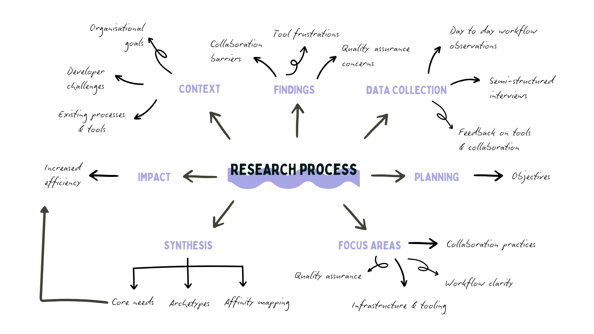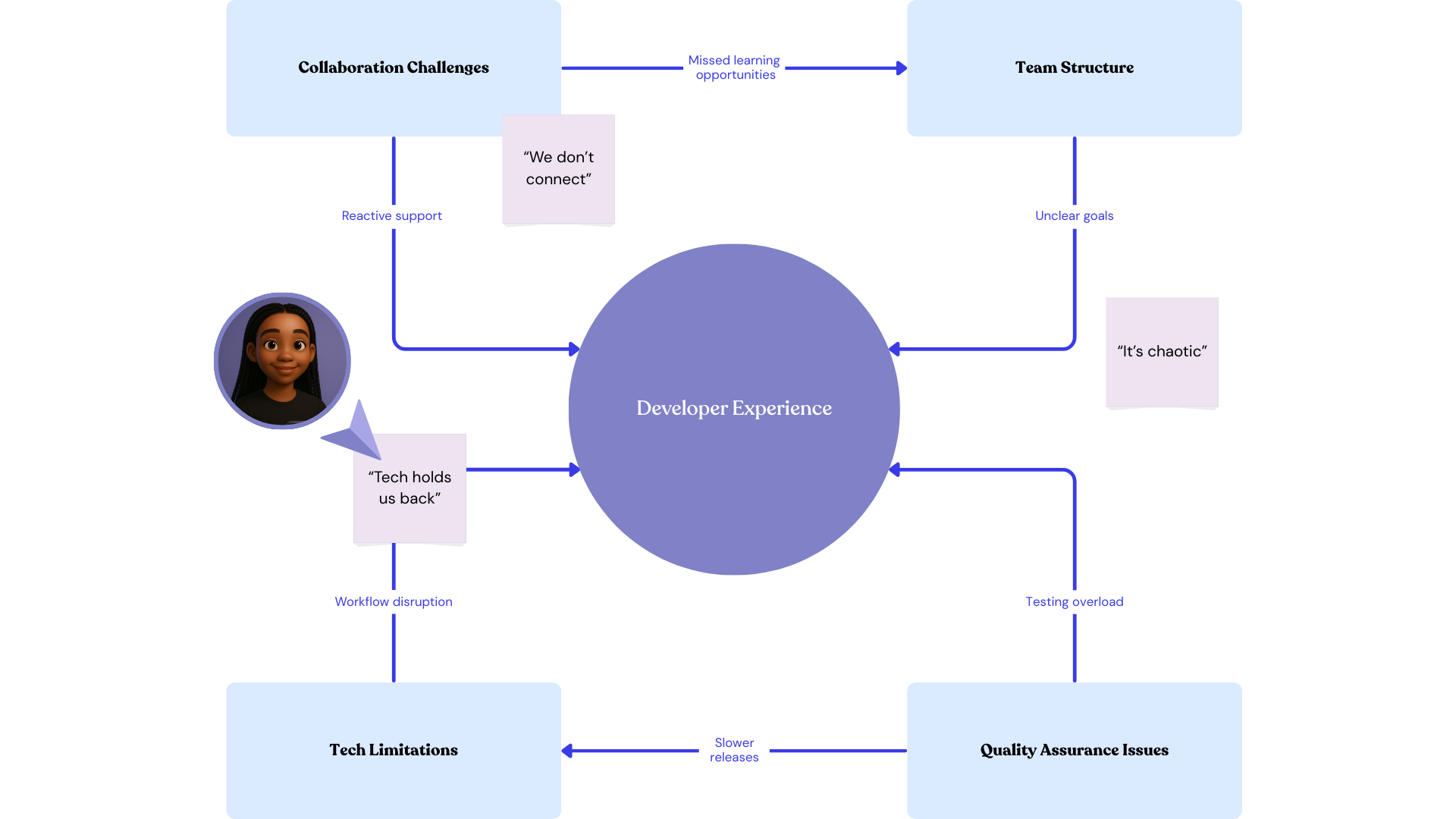We used Miro to build affinity maps, clustering quotes and observations into themes. This not
